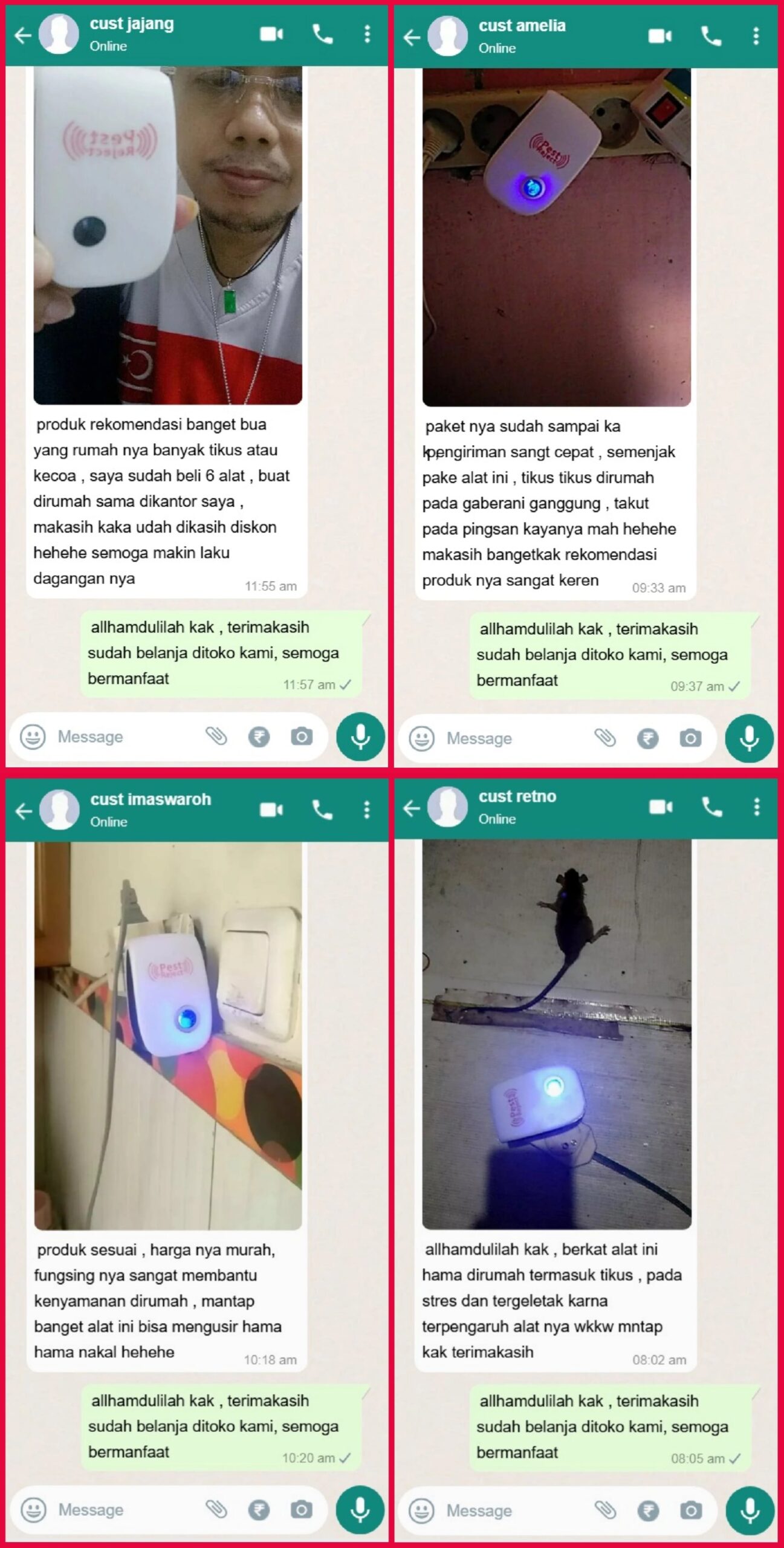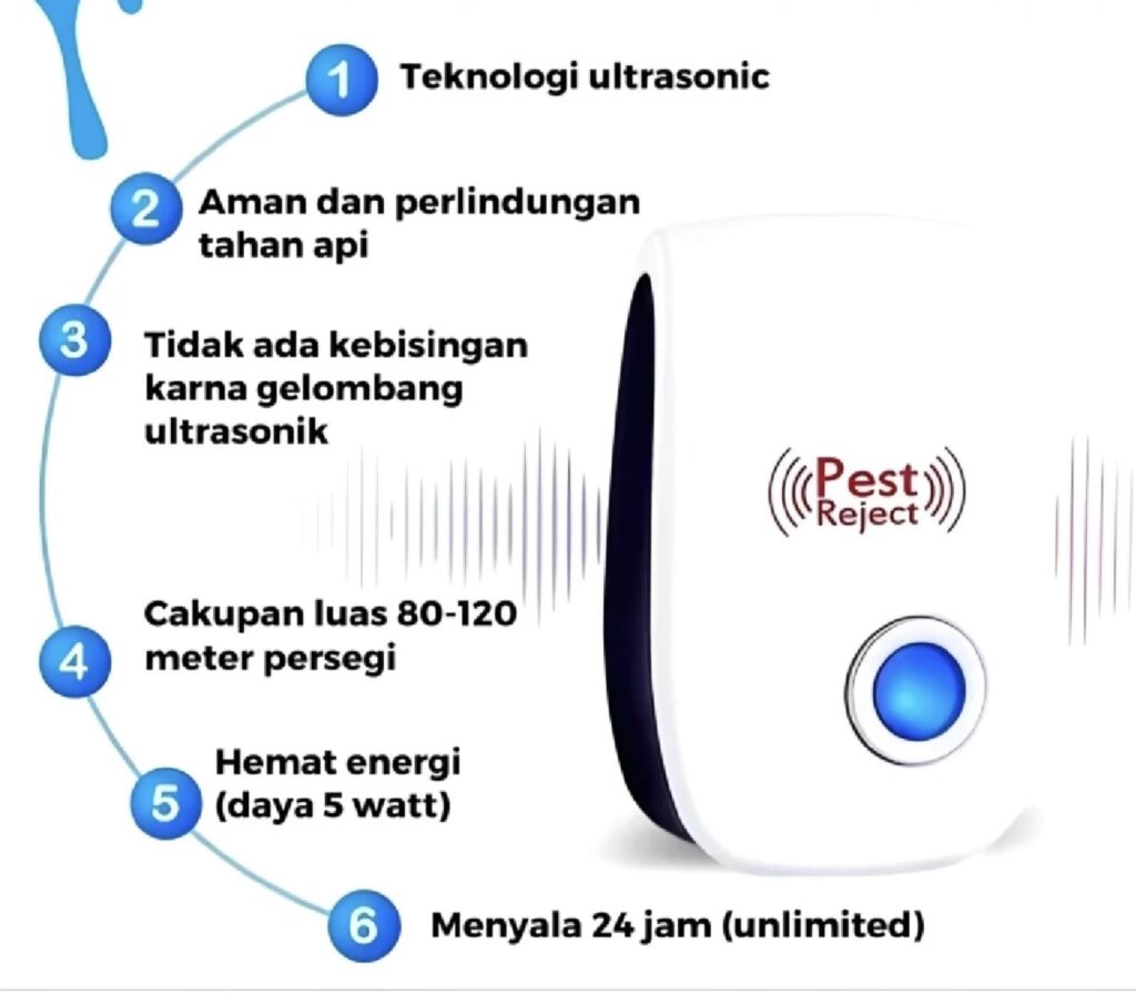 • Mudah Digunakan: Cukup colokkan Pest Reject ke soket listrik, dan alat ini akan otomatis bekerja untuk mengganggu hama selamanya.